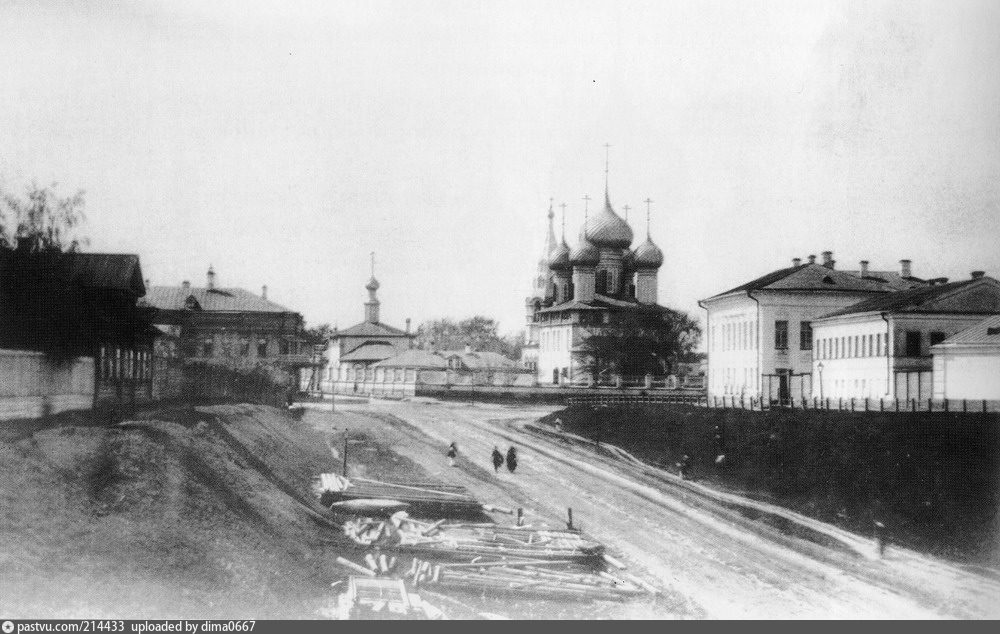 В целом наблюдения за местностью такие. Место широкое - одна из главных улиц, или даже площадь. Набережные отпадают хотя бы потому, что дома стоят с обеих сторон. Тем не менее, слева мы наблюдаем очевидный уступ где-то в 1,5 метра. К сожалению, не могу рассмотреть, насколько вдаль тянется этот "уступ". В любом случае, город у нас, особенно в дореволюционных границах, не очень-то рельефный, и такие места наперечёт. Ранее я предположил, что это один из четырёх съездов к Волге. Вот только Волжский, Семёновский и Воздвиженский точно отпадают по окружающей застройке. Остаётся Пятницкий, и тот под сомнением.